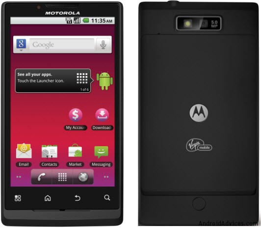 As with all Android phones, you can enjoy access to mobile services like Google Gmail, Google Maps with navigation, voice search, Latitude, Places, YouTube, and other features of Android 2.2 Froyo. Virgin Mobile and Motorola adds a bit of their applications in packaging, including AirG Chat, Facebook, My Account, Poynt, SCVNGR, another mobile, Virgin Mobile Live and where. The latter is a social networking application that allows the music to listen to live streams of music artists and find Madonna videos, blogs and concerts. Of course, you can always get more applications through the Android Market.